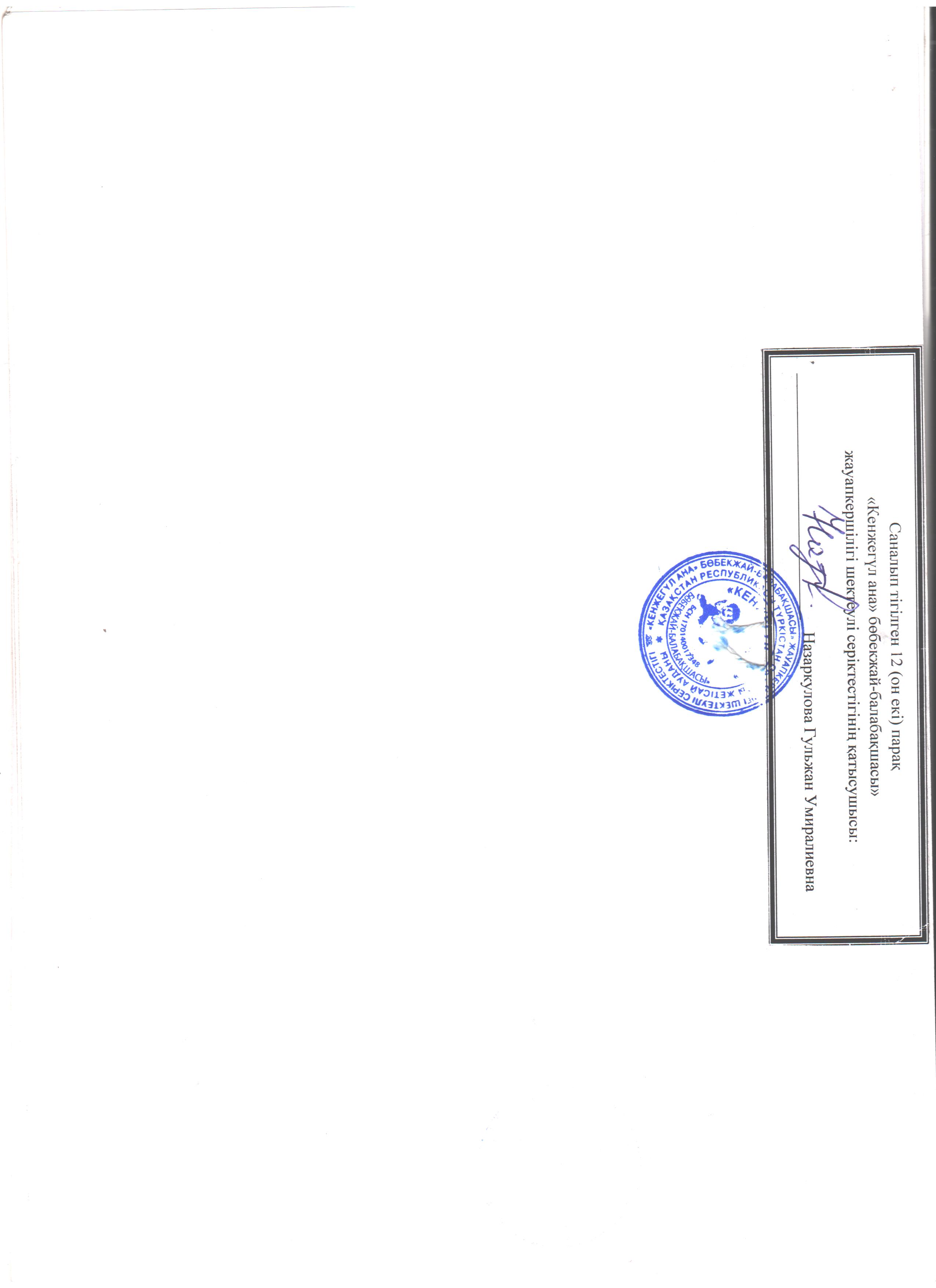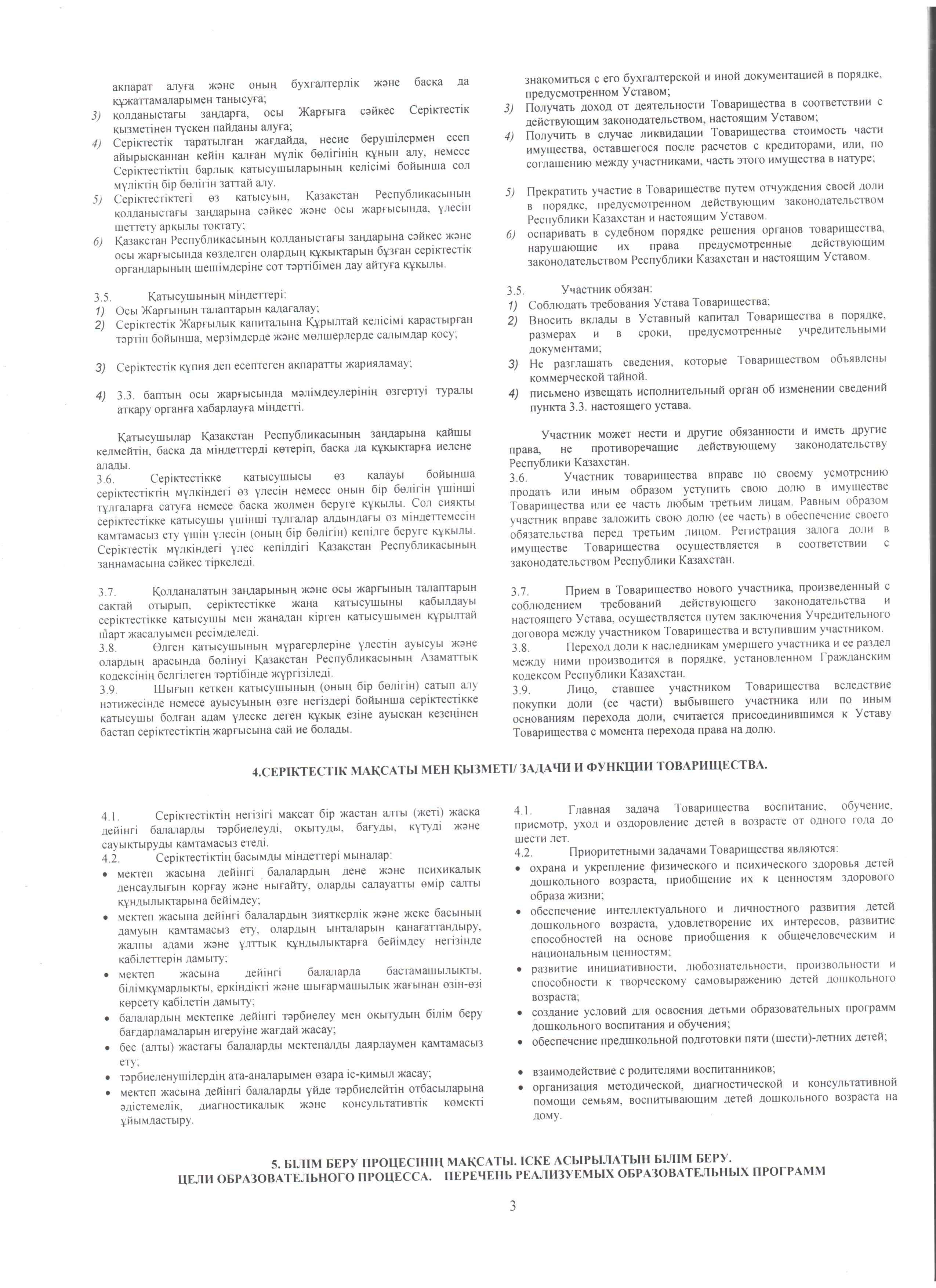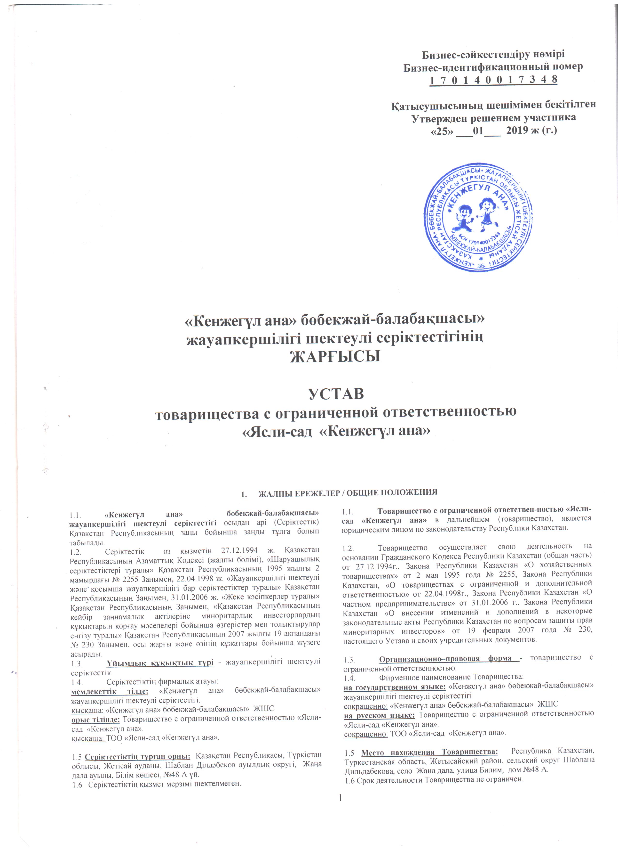 "КЕНЖЕГҮЛ АНА" БӨБЕКЖАЙ БАЛАБАҚШАСЫ" ЖАУАПКЕРШІЛІГІ ШЕКТЕУЛІ СЕРІКТЕСТІГІ