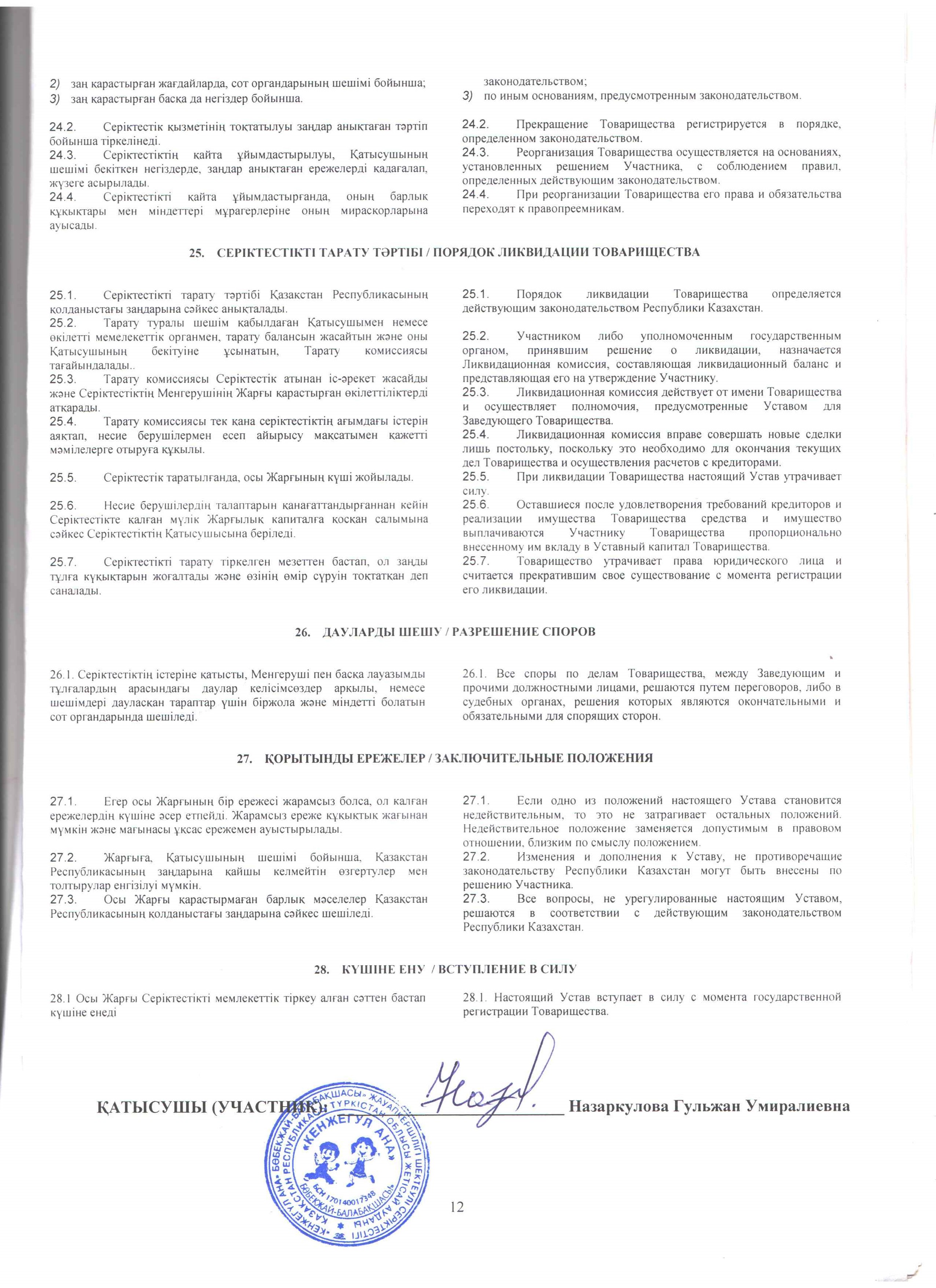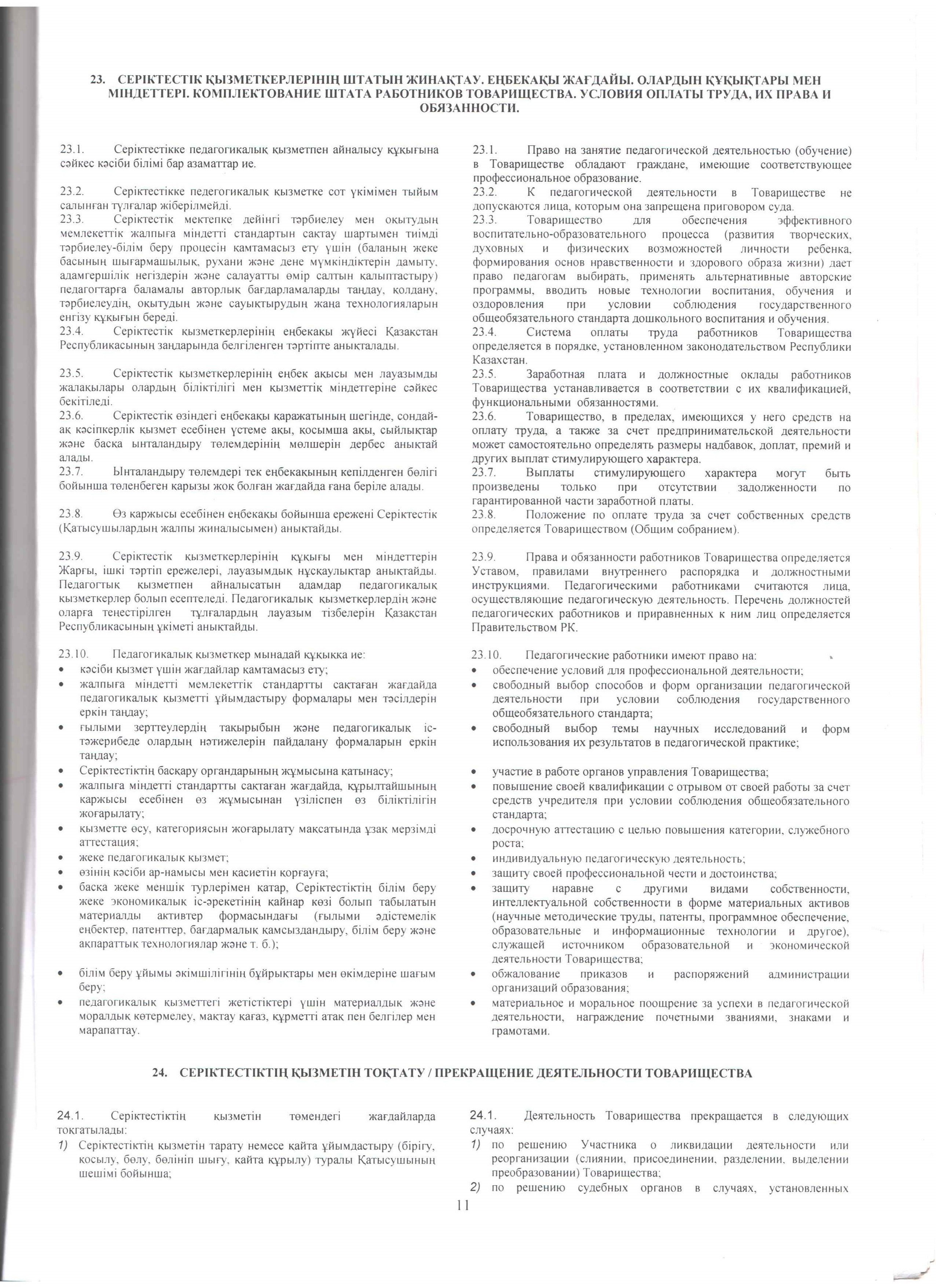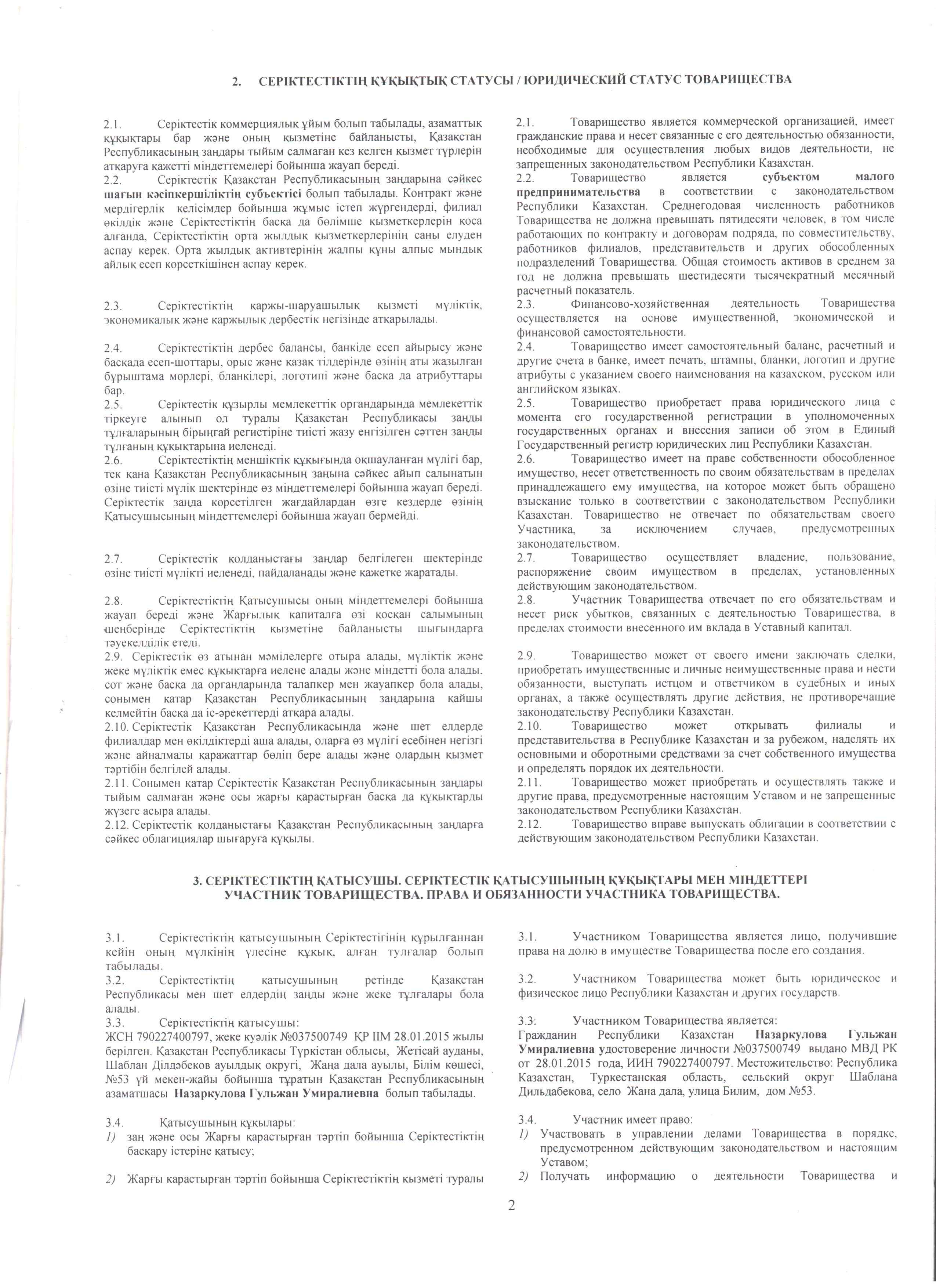 "КЕНЖЕГҮЛ АНА" БӨБЕКЖАЙ БАЛАБАҚШАСЫ" ЖАУАПКЕРШІЛІГІ ШЕКТЕУЛІ СЕРІКТЕСТІГІ